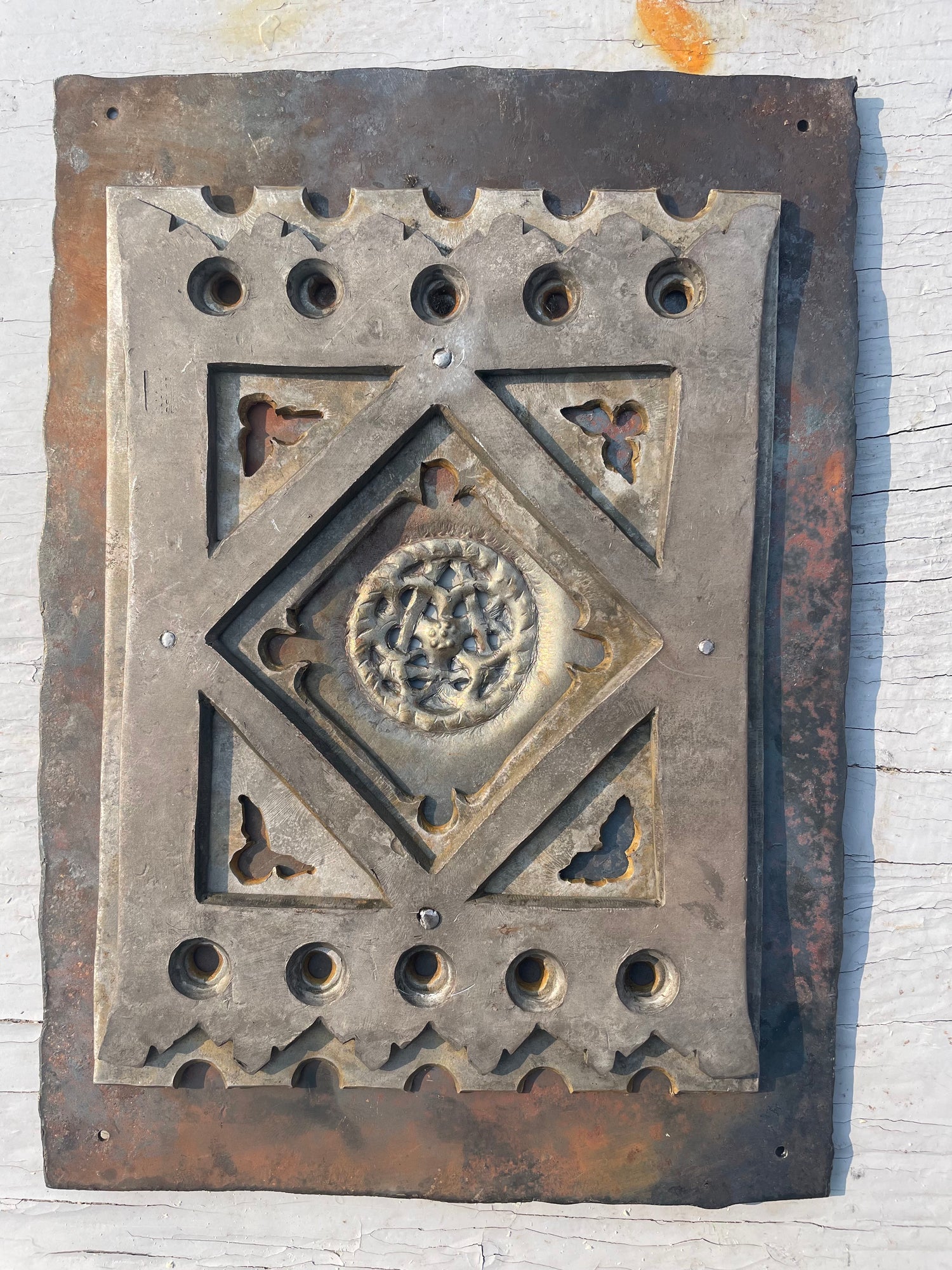 Above the work, you see "Kohtalon solmu / knot of fate." This metal artwork is my first tracery prototype, which began while attending a Gothic Elements workshop with master metalsmith Thomas Latané at Tunnel Mill (2023).